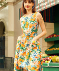 Consider this your official invitation to linger a little longer at the flower stand. The Market Day Dress from our ModCloth namesake label brings sunny-day charm with a classic fit-and-flare silhouette that twirls just right, a sleeveless bodice made for warm breezes, and a waist seam that creates an effortlessly flattering shape. A playful tie at the back lets you customize the fit (and adds a charming bow), while the lively citrus-inspired print delivers instant joy. Finished with roomy pockets for stashing small treasures—or an extra orange—this dress is ripe for compliments from brunch to golden-hour strolls.