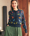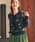 Embrace a fusion of prehistoric playfulness and retro charm with the Old Soul Classic Cardigan in Twilight Marina, a unique find from our ModCloth namesake label. This navy knit cardigan is adorned with colorful dinosaur prints, adding a splash of fun to your winter wardrobe. The button closure and medium stretch ensure a comfortable fit, making it perfect for layering over your favorite cold-weather ensembles. Whether you're headed to the office or a weekend getaway, this cardigan brings a touch of whimsy to any occasion.