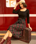 Step into timeless charm with the Home for the Holidays Skirt from our ModCloth namesake label. Featuring a classic red-and-green plaid with hints of golden yellow, this A-line skirt exudes festive sophistication. A black satin waist tie adds a touch of polish, while the side pockets and knee-length cut keeps it versatile for workdays or winter gatherings. Pair it with a fitted top and lace-up boots for a look that’s merry, modern, and effortlessly nostalgic.