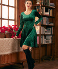 From our ModCloth namesake label, the Retro Radiance Fit & Flare Dress in mystic moss is a must-have addition to your winter wardrobe. Its knit fabric with medium stretch hugs your figure comfortably, while the scoop neck design adds a timeless elegance. The enchanting green hue complements the winter palette, making it ideal for seasonal parties or cozy dinner dates. Its versatile style ensures you'll turn heads wherever you go.