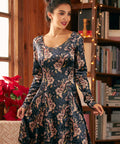 The Dream Twist variant of our Retro Radiance Fit & Flare Dress, from our ModCloth namesake label, brings a velvet paisley dream to life. The knit fabric, designed with medium stretch, offers a snug fit that flares gently, creating a silhouette that flatters every body type. Perfect for winter brunches or evening soirees, this dress pairs beautifully with your favorite coat and boots for a chic, seasonal look.