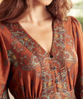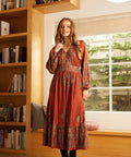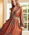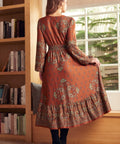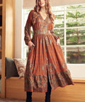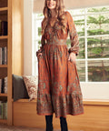 Wrap yourself in the warmth of nostalgia with the Goldie Hour Midi Dress. This piece from our ModCloth namesake label exudes a rustic charm with its terra cotta paisley pattern on soft knit fabric. Balloon long sleeves and a smock panel enhance its vintage flair, while pockets add a touch of modern functionality. Its medium stretch fabric and v-neckline adorned with button details make it a cozy yet chic choice for winter get-togethers or a romantic evening at the drive-in.