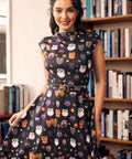 Elegance Anew Fit & Flare Dress in Owl Print from our ModCloth namesake label twirls you into the heart of autumn with a charming touch of quirk. The whimsical owl print dances across the French cashmere knit, offering medium stretch for sublime comfort. This sleeveless dress with its iconic Jackie O collar is a playful nod to vintage fashion, making it marvelous for harvest festivals or bookish afternoons in your favorite café.