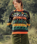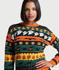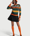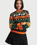 Covered throughout in delightfully frightful motifs that include ghosts, bats, candy corn, ravens, skulls, and more, this Fair Isle sweater from our ModCloth namesake label is a spooky menagerie! Made from a soft and comfy knit, this exclusive Fair Isle pullover sweater boasts orange ribbed-knit detailing at the collar, cuffs, and hemline, and has a cozy semi-fitted silhouette.