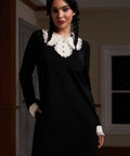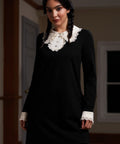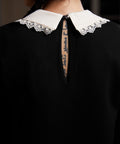 Laced Leaf Shift Dress from our ModCloth namesake label presents the timeless elegance of autumn with a modern twist. Crafted from soft Ponte fabric, this black shift dress harmonizes comfort with medium stretchability, ensuring a flattering fit for any silhouette. The design is enhanced with delicate lace trim and a contrasting placket, bringing a touch of whimsy to the streamlined shape. Button closure and essential side pockets combine function with style. Perfect for gallery hops or a crisp, fall picnic, this dress adds a magical touch to your wardrobe.