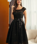 A little shimmer goes a long way in the Starry Soirée Lace Dress from our ModCloth namesake label. Crafted from intricate black lace dusted with subtle sequins, this vintage-inspired silhouette twinkles with every step. The satin ribbon at the waist adds a touch of retro romance, while the flattering fit-and-flare shape makes it perfect for festive gatherings, candlelit dinners, or any night made for a little sparkle.