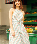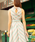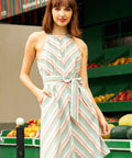Sugar, stripe, and everything nice—The Taffy Twist Halter Dress is a swirl of vintage sweetness from our ModCloth namesake label. With its candy-colored diagonal stripes, flattering A-line silhouette, and bow-tied halter neckline that charms from front to back, this sundress is pure summer nostalgia. A coordinating belt cinches the waist just right, while the soft drape of the skirt keeps things twirl-friendly.