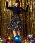 Get ready to orbit into cuteness with the More Than Charming Skirt from our ModCloth namesake label. This whimsical wonder features a galaxy of rainbow-hued cats and fluttering butterflies dancing across a midnight-black backdrop. With its gathered waist, handy pockets, and easy pull-on design, it’s equal parts playful and practical. Whether you’re stargazing, cat cuddling, or just showing off your cosmic sense of style, this skirt proves that charm isn’t just earthly—it’s truly out of this world.