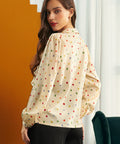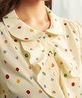 Bring a little whimsy to your weekday lineup with the Sweet Impressions Blouse from our ModCloth namesake label. Designed with a vintage-inspired Peter Pan collar and soft front ruffle, this silky button-front top is dotted with playful, painterly polka dots in cheery rainbow hues. Billowy sleeves and fabric-covered buttons add an extra touch of charm, making it a perfect match for everything from tailored trousers to twirly skirts.