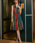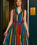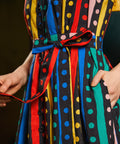 Step right up to retro charm with The Carousel Cutie Dress from our ModCloth namesake label! A true showstopper, this sleeveless shirt dress bursts with colorful stripes and polka dots that swirl together in joyful harmony—like a vintage carnival come to life. Made from 100% cotton, it features a button-front bodice, self-tie belt, and a full, twirl-ready skirt that practically dances with every move. The tailored collar and waist-cinching sash lend a timeless silhouette, while the pockets add that oh-so-modern practicality. Perfect for brightening any day, this dress is your ticket to instant dopamine dressing—vibrant, vintage, and totally you.