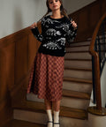 Unearth your playful side with the Fossilized in Fashion Sweater from our ModCloth namesake label. Crafted in 100% cotton, this black crewneck pullover is decorated with the Bone Voyage design — a bold white knit of prehistoric skeletons marching across the front and back. Cozy yet quirky, it’s the perfect layer for adding a little Jurassic joy to your cool-weather wardrobe.