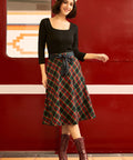 Step into timeless charm with the Home for the Holidays Skirt from our ModCloth namesake label. Featuring a classic red-and-green plaid with hints of golden yellow, this A-line skirt exudes festive sophistication. A black satin waist tie adds a touch of polish, while the side pockets and knee-length cut keeps it versatile for workdays or winter gatherings. Pair it with a fitted top and lace-up boots for a look that’s merry, modern, and effortlessly nostalgic.
