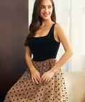 Turn every entrance into an event with the Tulle Intentions Dress from our ModCloth namesake label. This vintage-inspired stunner pairs a corset style black velvet bodice with a flouncy polka-dot tulle skirt for a look that’s both sweet and sultry. The square neckline and fitted waist flatter your figure, while the full midi skirt brings the drama. Perfect for parties, candlelit dinners, or any night you plan to make just a little trouble.