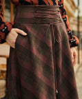 The Lace of Mind Skirt from our ModCloth namesake label blends refined vintage charm with a dash of edge. Featuring a beautifully structured high waist with corset-inspired lacing, this plaid A-line skirt flatters every curve while giving off just the right amount of drama. The warm chestnut tones evoke cozy café afternoons and autumn strolls, while the subtle swing of the hem keeps things effortlessly feminine. Style it with lace-up boots and a clever knit for instant bookish sophistication.
