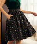 The flattering A-line silhouette moves effortlessly from workday to weekend, while handy side pockets add a touch of practicality to all that whimsy. Pair it with a crisp blouse or cozy knit—because classic charm never goes out of style, especially when it’s sprinkled with joy.