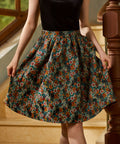 Stroll into a secret garden with this enchanting full skirt, where mischievous black cats lounge among a lush tangle of vintage florals. The More Than Charming Skirt returns in a print that feels like it was discovered in the attic trunk of a very fashionable witch. With its softly gathered silhouette, pockets (for snacks and spells), and a tapestry-like pattern that glows with rich jewel tones, this skirt turns even an ordinary Tuesday into a whimsical woodland wander. Pair it with velvet, cardigans, and your most mysterious smirk.