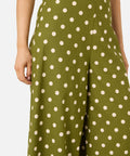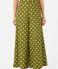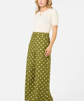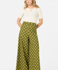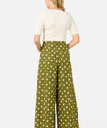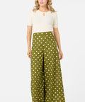 Olive green wide leg polka dot pant, we're loving our new summer polka dot with posh cream spots