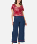 Add a playful, preppy touch to your wardrobe with the Sweet Heart Top. Featuring a cheerful polka-dot heart print in vibrant red, this organic cotton top pairs perfectly with skirts, pants, or layered under dresses for a classic, feminine look.