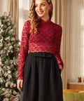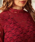 Timeless Twilight Era Long Sleeve Top from our ModCloth namesake label wraps you in elegance and comfort as the temperature dips. This mock neck top, fashioned from luxurious lace and featuring high stretchability, hugs your figure in the most flattering way. The all-over burgundy knit embodies the mysterious allure of autumn nights. Perfect for both office elegance or a nighttime rendezvous, it’s a versatile piece that brings a touch of whimsy to your fall wardrobe.